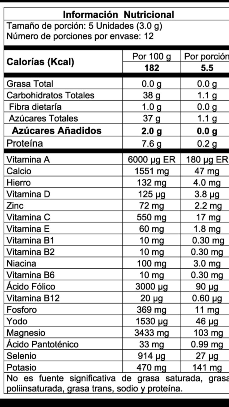 • Contiene también vitaminas del complejo B, vitamina C, ácido fólico, selenio y yodo.